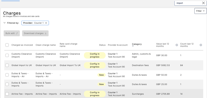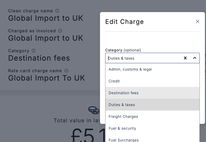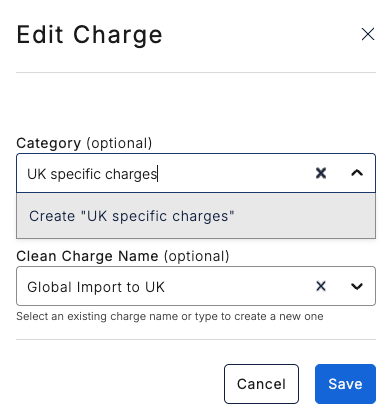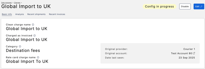 - Click on the charge name you would like to update e.g. Global Import to UK. This will open the charge details page.