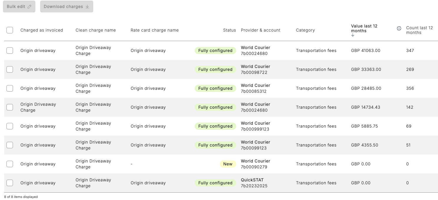 Go to the Data manager > Charges section (available for Customer Admin or Optimise roles)