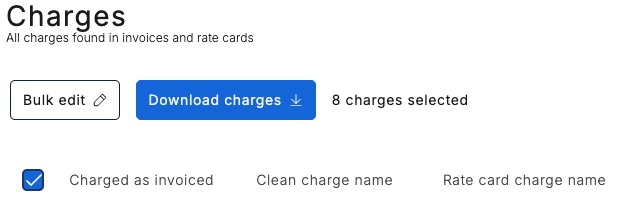 - Select the top level check box to select all the charges
