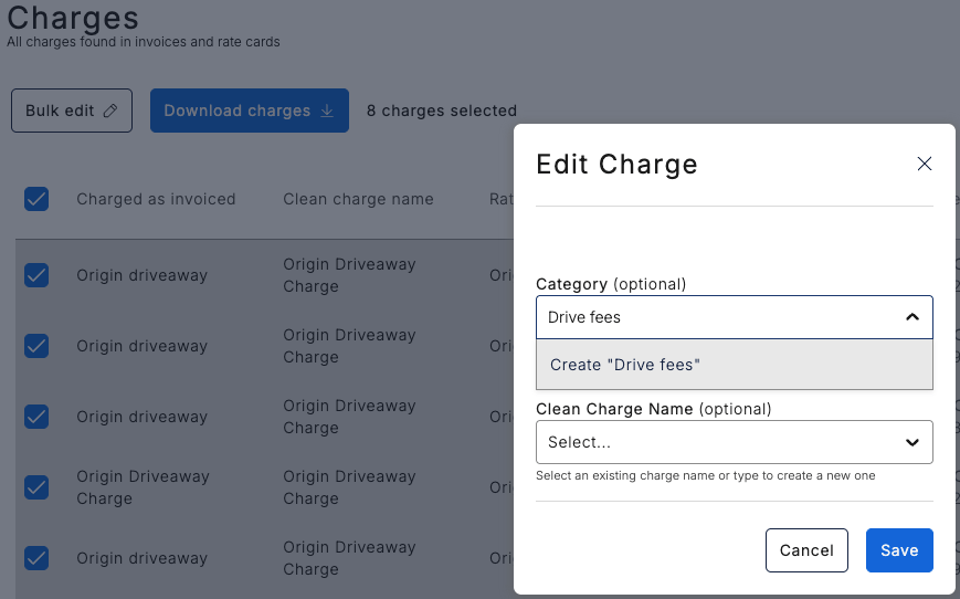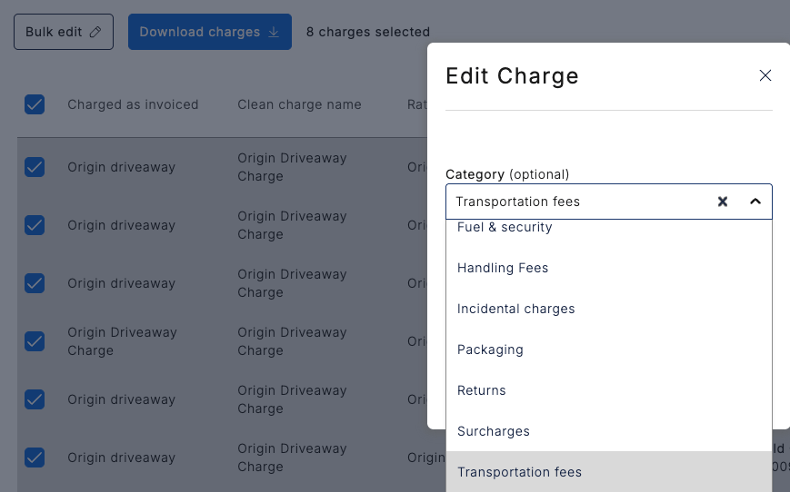 Customers have the flexibility to change the assigned categories individually or in bulk for new or existing charges.