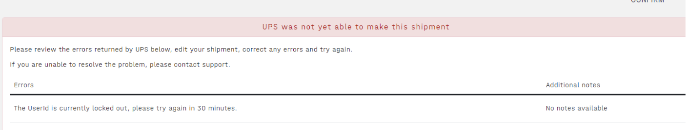 vi. UPS: The UserID is currently locked out. Please try again in 30 minutes.