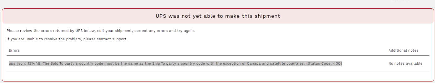 If you receive this error message upon booking, please reach out to your UPS account manager. This usually means that there is an issue with the account itself, and is something that you should be able to resolve with the guidance of your accounts manager.