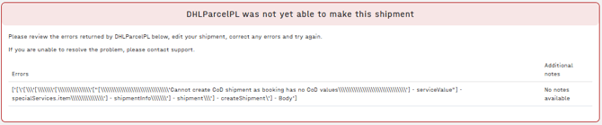 If you receive this error message when booking, advise them to check with the store or your IT team to verify if a COD value was set in the movement demand API. This typically indicates that there is an issue with the COD value that was sent through. Please keep in mind that changing the amount (value) on the platform will not work because the mistake refers to the COD value, which is pre-mapped by Intex.