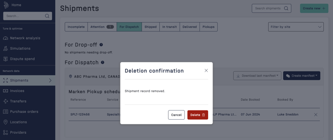 If you have booked a shipment but need to cancel that booking for various reasons, you can 'soft delete' the booking using the following steps: