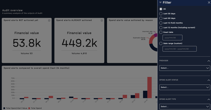 As documented in the article about how Audit works, a number of Audit checks are run against your invoices to analyse for inappropriate or inaccurate billing by your providers. Every discrepancy generates a 'spend alert'. All spend alerts can be seen on the 'Process spend alerts' tab in the 'Audit spend' section in the 7bridges software: