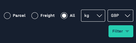 Some charts will also provide the ability to view Parcel and Freight separately or together: